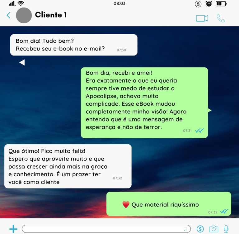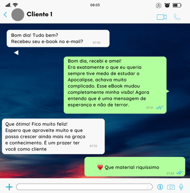 O eBook é incrível! Consegui finalmente entender as trombetas, o número 666 e a marca da Besta de forma simples. Hoje me sinto mais preparada espiritualmente."